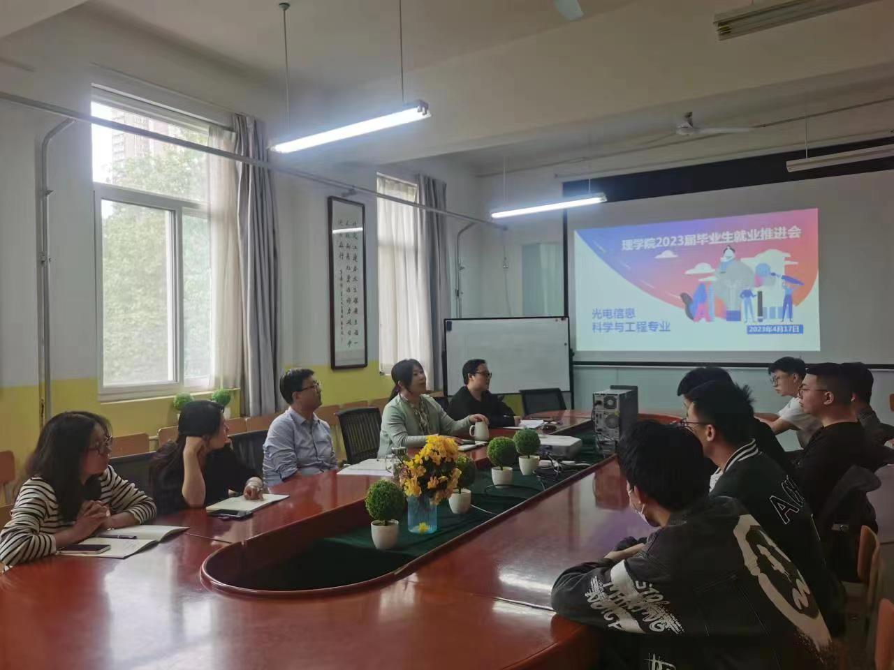 为持续推进2023届毕业生充分就业、帮助未就业学生高质量就业,4月12日和4月17日下午4点,澳门网投官方网站在教学南楼428会议室分别召开信息与计算科学专业和光电信息科学与工程专业2023届未就业学生就业工作推进会。澳门网投官方网站党总支书记胡红亮、院长李小光、教研室主任王小梅、周千、专业负责人张惠玲、王妙和学生管理科科长李扬、毕业班辅导员、班主任及2019级未就业学生参加了此次会议。会议由李扬主持。