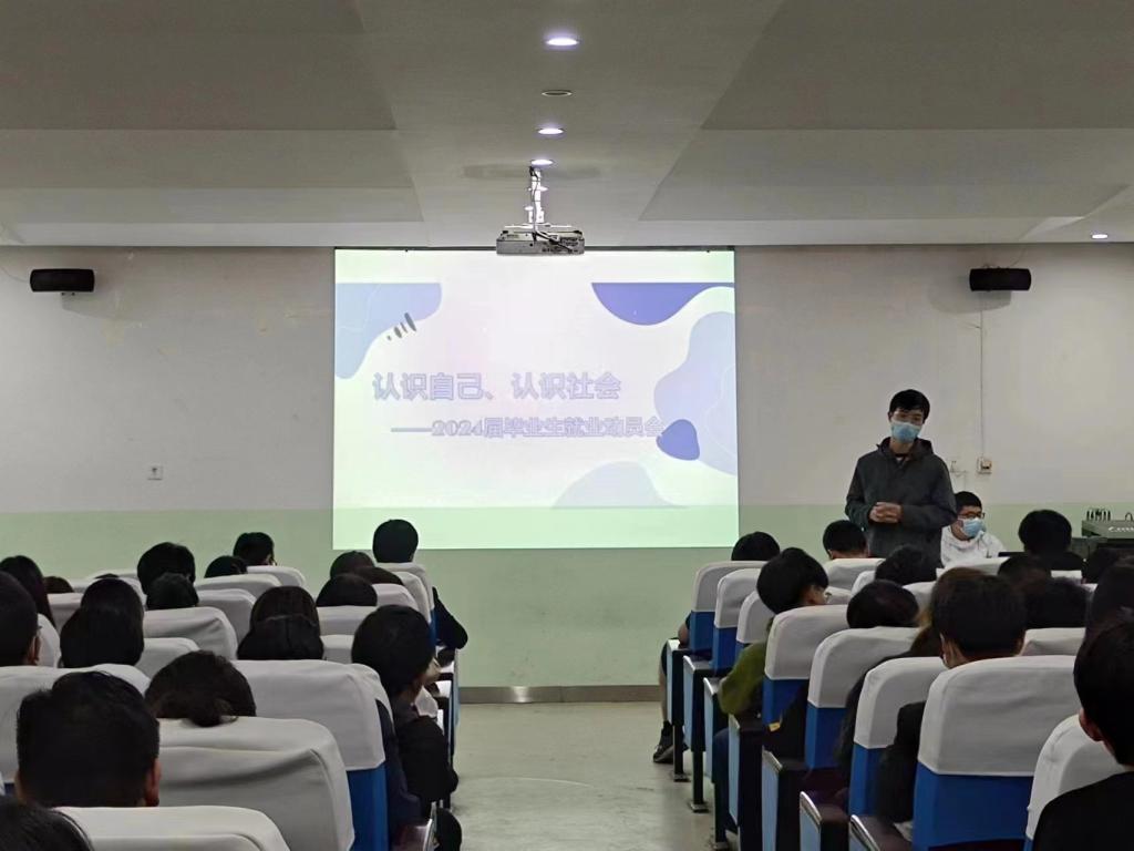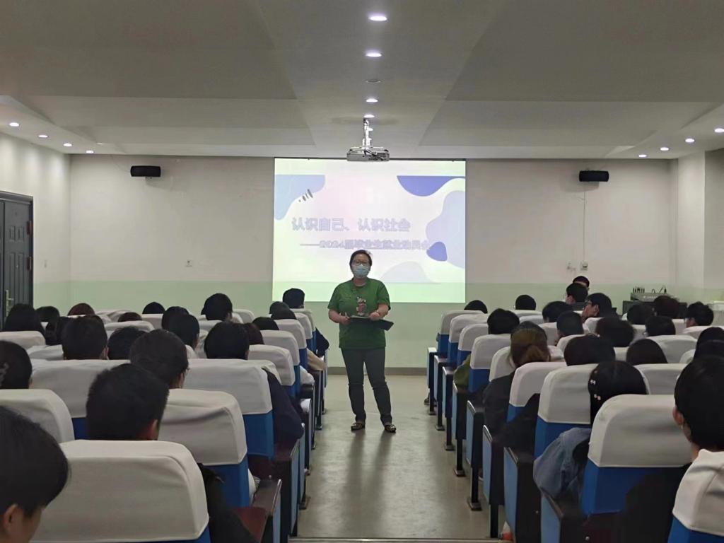 为持续做好澳门网投官网毕业生就业工作,帮助大三学生做好职业规划,明确学习目标,6月16日,澳门网投官方网站在莲湖校区南楼108教室召开了“认识自己、认识社会”2024届毕业生就业动员会。澳门网投官方网站党总支书记胡红亮、学生管理科科长李扬、年级辅导员张岩及大三全体学生参加。