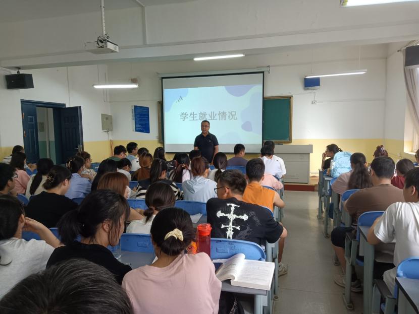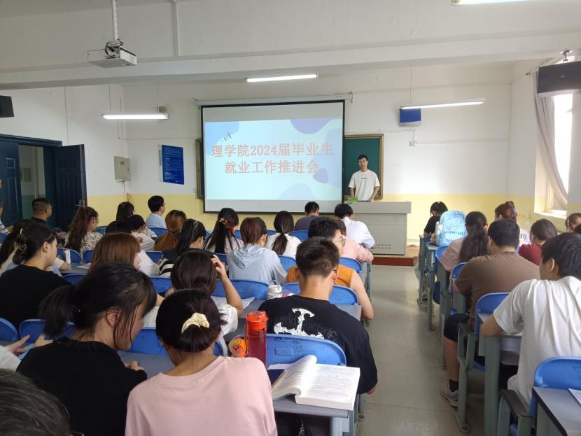 为持续推进2024届毕业生就业工作,9月12日下午,澳门网投官方网站在莲湖校区教学南楼333教室召开2024届毕业生就业工作推进会。澳门网投官方网站党总支书记胡红亮、副院长丁琦、校企合作负责人曹建波、数学教研室主任周千、物理教研室主任金发成、信息与计算科学专业负责人李小雪、辅导员张岩及2024届全体毕业生参加。