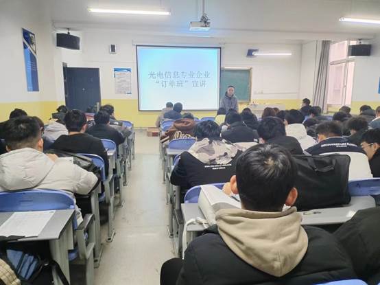 为增强学生对优质企业的了解,提升专业品牌,有效实现教学与实践的有机结合,岗位实习与就业的良好对接。12月5日到12日,澳门网投官方网站开展了光电信息专业“订单班”动员,澳门网投官方网站校企合作负责人曹建波、光电信息科学与工程专业负责人王妙、辅导员张岩及2021级光电信息专业全体学生参加。