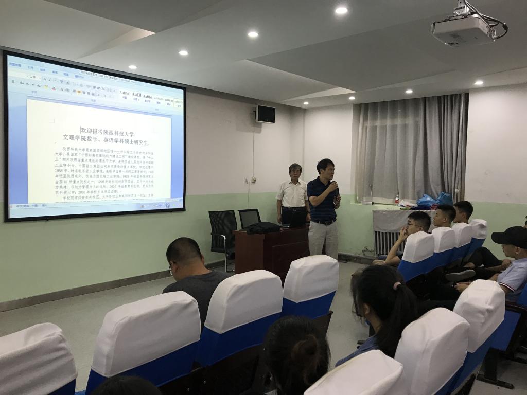讲座开始,侯教授首先向同学们介绍了他们学院所招收的研究生的专业情况并且讲述了每个专业的研究方向,以及考上研究生之后的就业方向。然后向同学们介绍了陕科大研究生录取的情况,表示欢迎同学们报考陕西科技大学文澳门网投官方网站的硕士研究生。