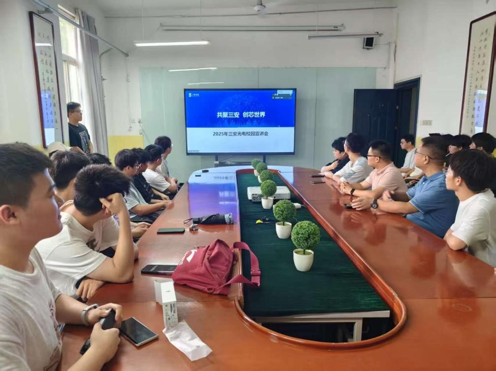 王向阳做就业动员,要求同学们提高就业积极性和主动性,树立正确的就业观念,希望大家都能就好业、高质量就业。曹建波分别介绍了校企合作订单班企业(三安光电有限公司、西安和其光电科技股份有限公司)的基本情况,随后各企业负责人召开宣讲,对订单班的培养目标、培养模式、薪酬福利、晋升通道、未来发展等进行了详细讲解。会上,同学们围绕订单班选拔要求、职业发展、工作内容等问题踊跃提问。与会人员就同学们提出的问题都进行了耐心解答。